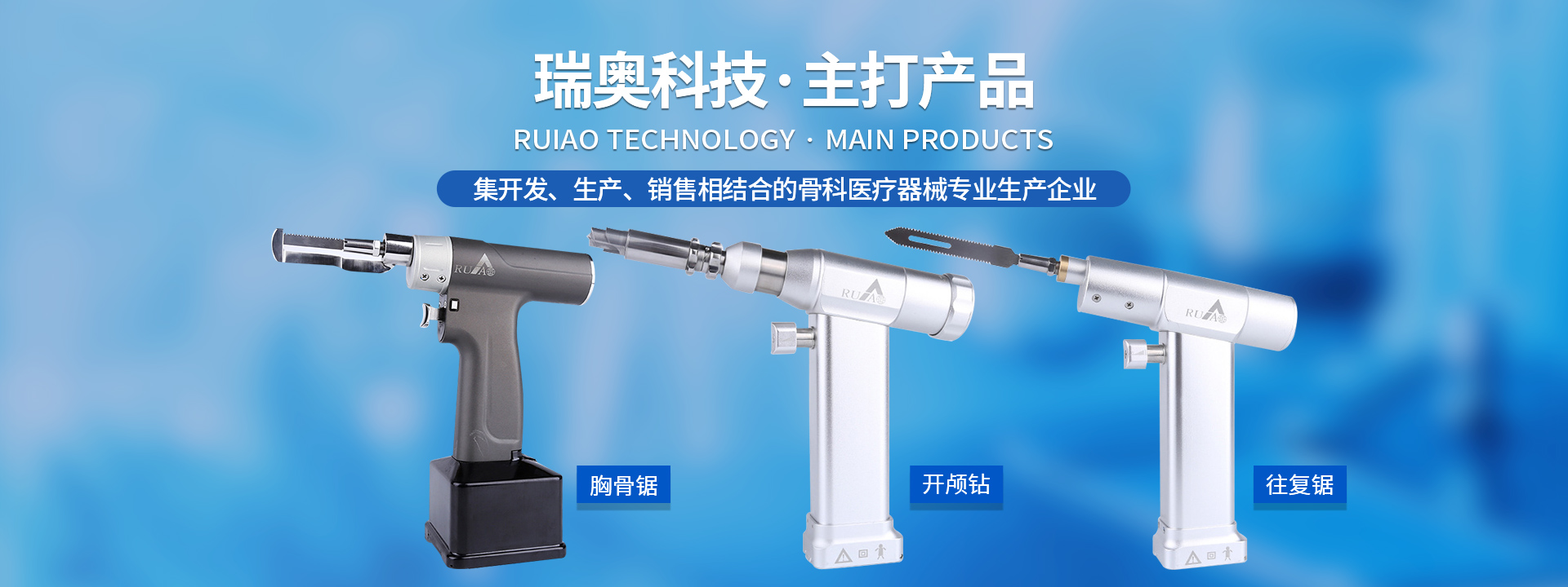 鹽城瑞奧科技有限公司主要產(chǎn)品:醫(yī)用電動(dòng)鋸鉆系列(可高溫高壓消毒和熏蒸消毒兩種):包含骨鉆、擺鋸、胸骨鋸、空心骨鉆、開顱鉆、顱骨銑等等,適用于骨科、腦外科、神經(jīng)外科、胸外科、手足及顯微外科、脊柱外科、整形外科等各種手術(shù)的要求。電動(dòng)石膏鋸可切割高分子繃帶、石膏等?;A(chǔ)器械系列:咬骨鉗,髓核鉗,椎板咬骨鉗,持骨鉗,四肢骨折手術(shù)器械包等。